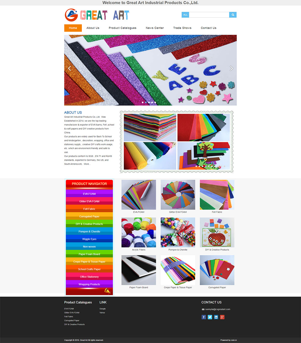 Great Art Industrial Products Co.,Ltd. Was Established in 2014, we are the top leading manufacturer & exporter of EVA foams, Felt ,school & craft papers and DIY creative products from China.Our products are widely used for Back To School and kindergarten