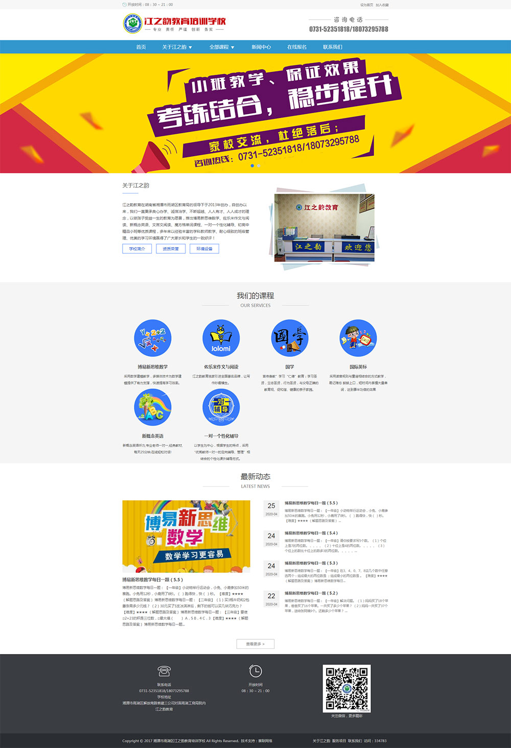 江之韻教育是在湖南省湘潭市雨湖區(qū)教育局的領導下,由湖南省優(yōu)秀青年企業(yè)家張建于2013年創(chuàng)辦。江之韻教育堅持“良心辦學、誠信治學;一切為了學生,為了學生一切”為辦學理念;以人為本,通過專業(yè)服務全方位提升學生的綜合素質 ,通過專業(yè)咨詢全學科提供學生的選擇機會,通過針對培訓全層次保障學生的升學成績;江之韻教育教學培訓服務、教育咨詢服務、教研產(chǎn)品研發(fā)為一體,開展的業(yè)務主要有精品化小班教學、放學托管、中小學高端個性化輔導業(yè)務、藝考文化培訓、體驗式戶外素質拓展訓練等項目。