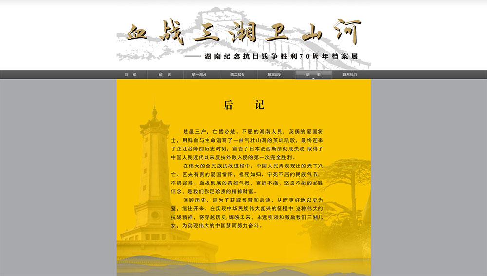 血戰(zhàn)三湘衛(wèi)山河 - 湖南紀(jì)念抗日戰(zhàn)爭勝利70周年檔案展
