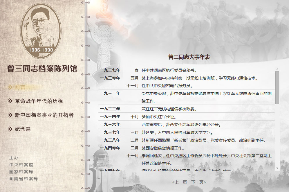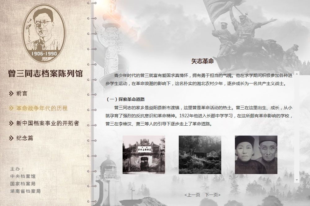 湖南省檔案局(館)《曾三同志檔案網(wǎng)上陳列館》項目上線!http://sdaj.hunan.gov.cn/wszt/